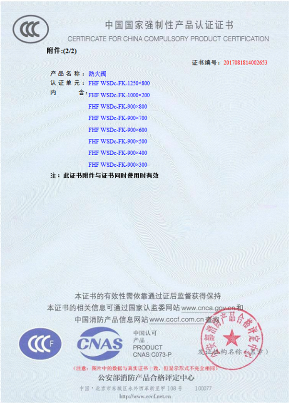 產品全通過國家消防檢測中心檢測,獲得CCC證書